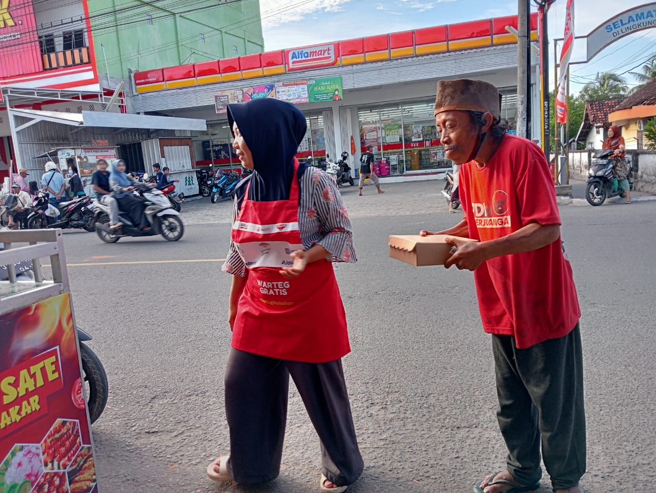 Pembagian menu berbuka gratis lewat program Warteg Gratis Alfamart. (Inside Lombok/Ist)