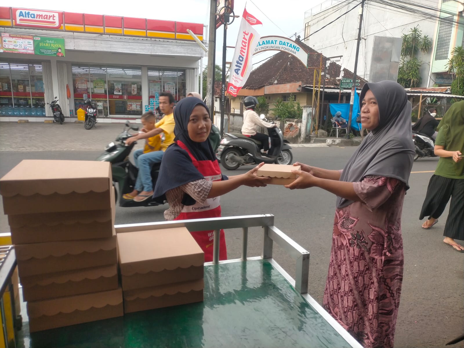 Pembagian menu berbuka gratis lewat program Warteg Gratis Alfamart. (Inside Lombok/Ist)