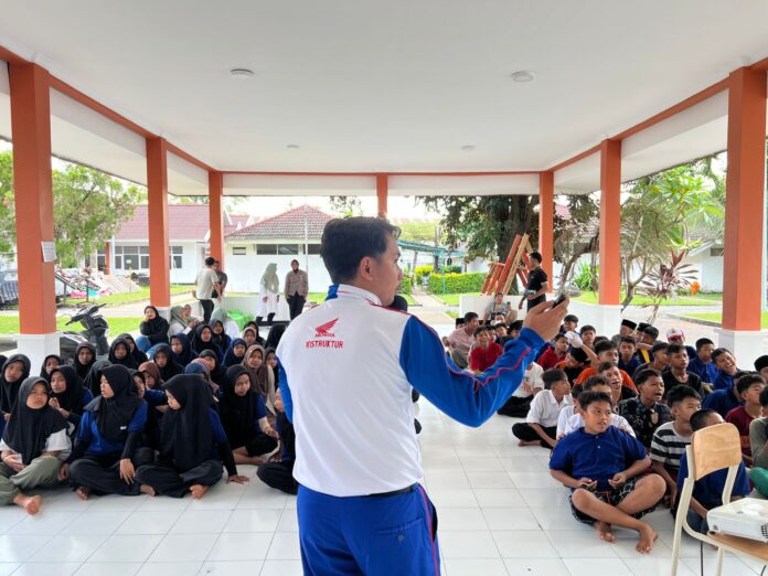 Lombok Barat (Inside Lombok) – Komitmen untuk menciptakan generasi yang sadar keselamatan di jalan raya kembali diwujudkan oleh Astra Motor NTB melalui program edukasi Safety Riding, yang kali ini menyasar siswa-siswi SRMP 18 Lombok Barat, sebuah lembaga pendidikan non-formal yang berlokasi di Sentra Paramita, Mataram. Kegiatan yang berlangsung penuh semangat ini digelar dengan menggandeng Satlantas Polres Lombok Barat sebagai mitra utama. Dua pemateri andal hadir dalam pelatihan ini Satria Wiman Jaya, Instruktur Safety Riding dari Astra Motor NTB, dan Brigadir I Ngurah Aryawan, dari Satuan Lalu Lintas Polres Lombok Barat.