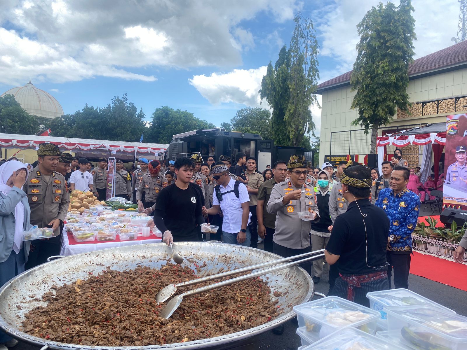 “Ukuran kuali yang kita bawa ini dua meter itu yang kita bawa keliling, ini kali ketiga kita kolaborasi dengan Polri, Polres Loteng ini yang ke tiga,” ungkap bobon.