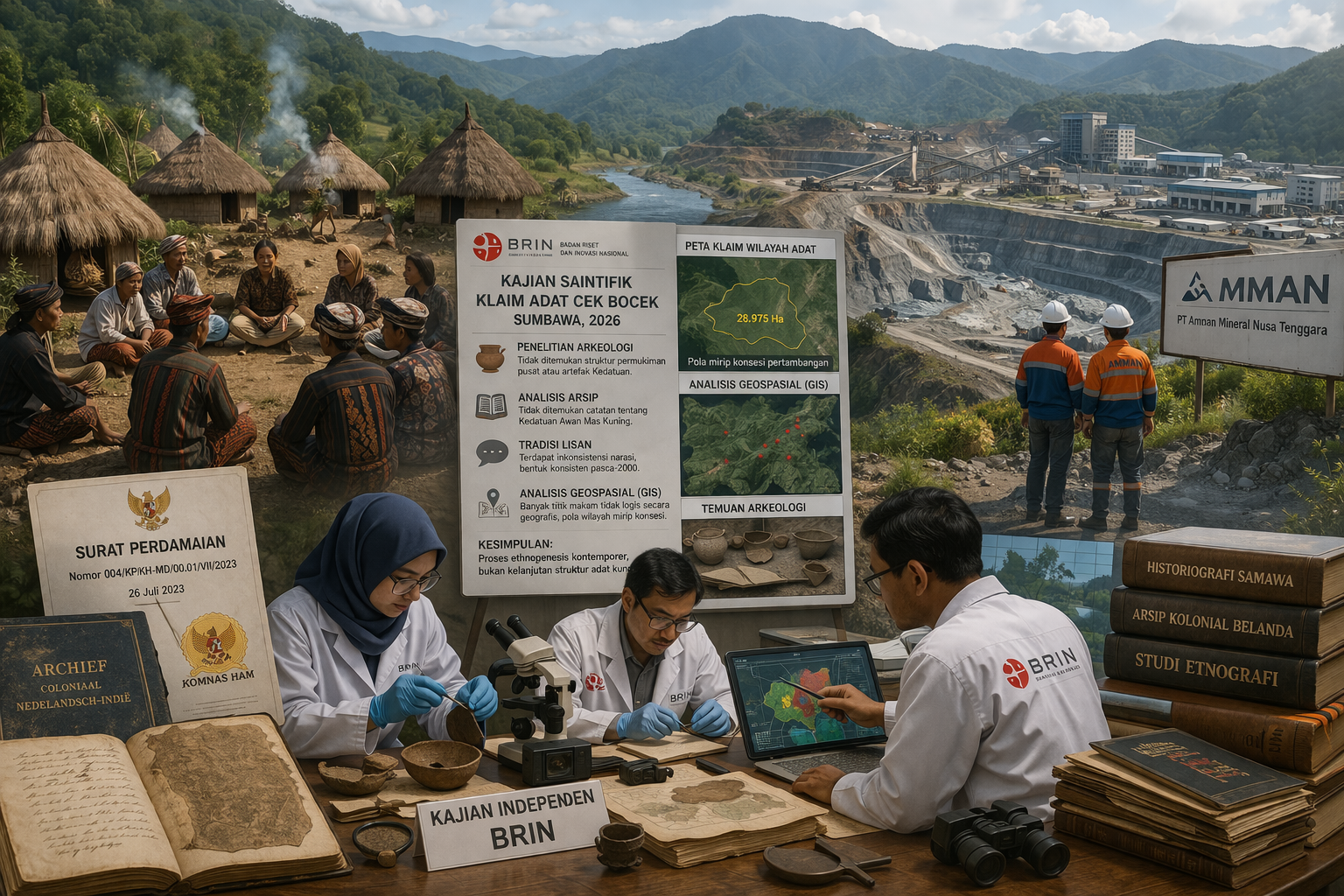 Sumbawa Barat (Inside Lombok) – Pemerintah Kabupaten Sumbawa bersama Badan Riset dan Inovasi Nasional (BRIN) mengungkap temuan ilmiah terkait perselisihan antara komunitas Cek Bocek Selesek Reen Sury (CBSR) dan PT Amman Mineral Nusa Tenggara (AMNT), dalam kajian yang dipaparkan di Sumbawa, 5 Maret 2026. Kajian ini dilakukan untuk memverifikasi klaim wilayah adat secara objektif sebagai bagian dari penyelesaian konflik yang telah berlangsung bertahun-tahun.