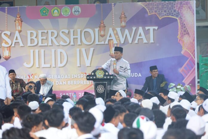 Acara menjadi semakin syahdu saat Kakanwil mengajak seluruh siswa dan siswi melantunkan salawat bersama. Lantunan salawat yang menggema di aula menciptakan atmosfer kebersamaan dan religiusitas yang mendalam.