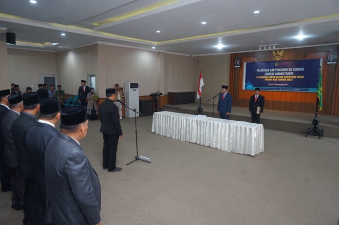 Mataram (Inside Lombok) – Kepala Kantor Wilayah Kementerian Agama (Kemenag) Provinsi Nusa Tenggara Barat (NTB) secara resmi melantik H. Najamuddin, M.Pd sebagai Kepala Kemenag Kabupaten Dompu. Acara pelantikan berlangsung khidmat pada Jumat, 19 September 2025, di Aula Kantor Kanwil Kemenag NTB.