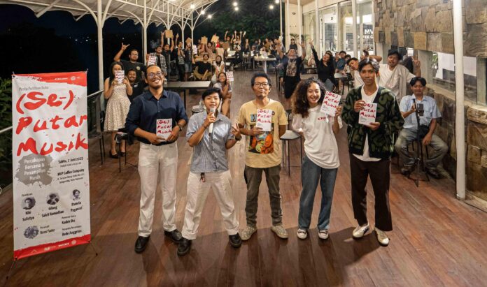 Mataram (Inside Lombok) – Kolektif media musik asal Kota Mataram, Beatriff menyelenggarakan Pesta Perilisan Buku “(Se-)” Putar Musik”, sebuah kompilasi esai yang merekam berbagai pemikiran dan refleksi seputar dunia musik pada Sabtu (7/6) di MVP Coffee Company. Acara tersebut menampilkan sesi percakapan bersama dengan editor buku dan tim redaksi Beatriff yang dipandu Dede Anggrian, serta penampilan musik dari Ross Famz dan acara sepenuhnya dipandu Kadek Osi