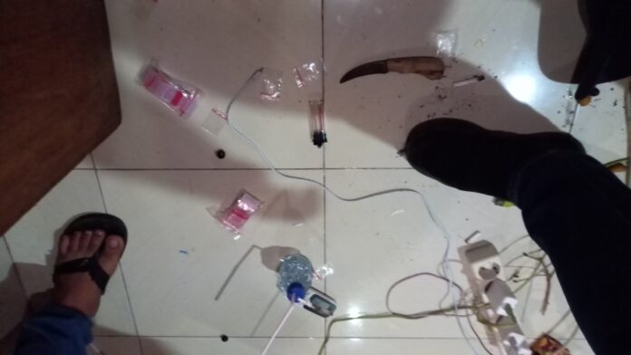 Dari hasil penggeledahan, petugas berhasil menyita sejumlah barang bukti yang mencakup 16 plastik klip berisi kristal bening yang diduga kuat merupakan narkotika jenis sabu, 1 buah HP android, 1 buah pipet plastik, serta 1 bungkus rokok yang berisi 5 plastik klip berisi kristal bening yang diduga sabu. Berat bruto barang bukti sabu yang ditemukan mencapai 5,44 gram.