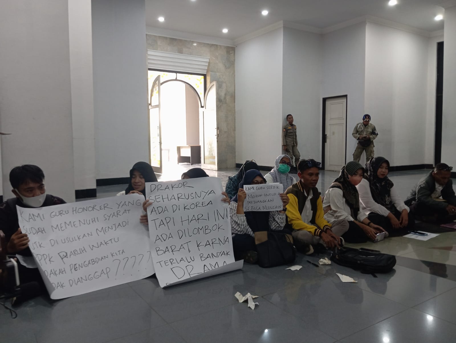 Salah satu perwakilan guru, Baiq Sri Widia, menyampaikan kekecewaannya karena tenaga honorer yang baru bergabung justru dinyatakan lolos, sementara yang telah lama mengabdi berstatus TMS.