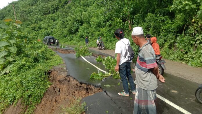 Diterangkan, kondisi jalan yang dibangun pada tahun 2014 silam itu memang sudah dilaporkan mengalami retakan sejak musim hujan sebelumnya. Saat itu sudah langsung ditinjau oleh Kadis PU-TR Lobar. Namun, setelah kawasan tersebut kembali diterjang hujan deras sejak Rabu (19/03) malam, kondisinya pun kian parah hingga amblas lantaran sebagian badan jalannya longsor.