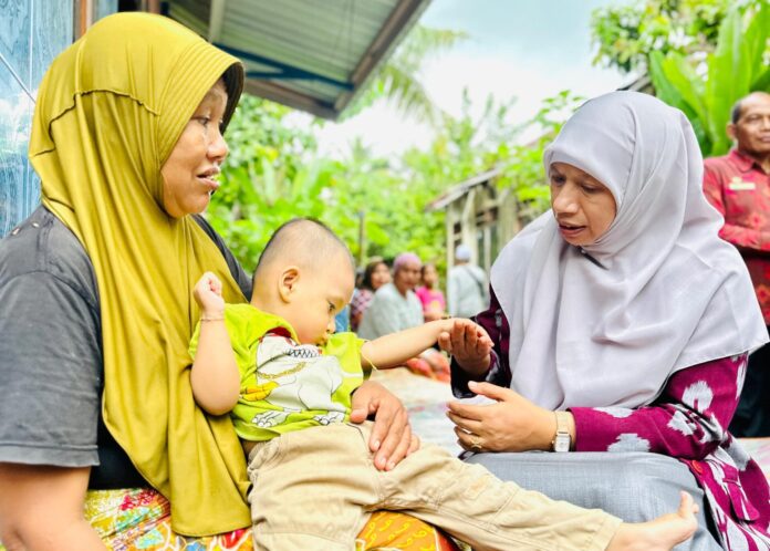 Lombok Barat (Inside Lombok) – Wakil Bupati Lobar, Nurul Adha tak kuasa menahan sedih saat mengunjungi Deluna, Balita penderita gangguan syaraf yang kini hanya tinggal bersama kakek dan neneknya akibat ditelantarkan oleh kedua orang tuanya.