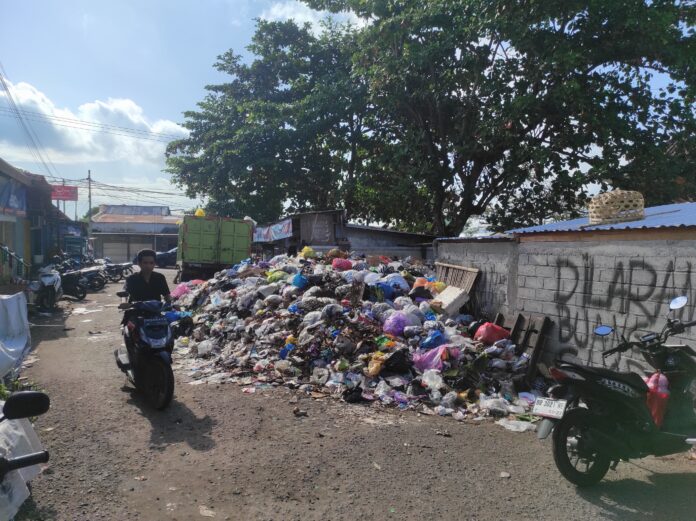 Lombok Barat (Inside Lombok) – Dampak dari menumpuknya sampah di banyak titik di Lombok Barat (Lobar) sudah mulai dirasakan, tidak hanya oleh para pedagang pasar, tetapi juga masyarakat luas. Tumpukan sampah di beberapa pasar, seperti Kediri, Gerung, Gunungsari hingga Narmada menjadi keluhan. Bahkan, beberapa warung makan pun terpaksa tutup akibat aroma busuk sampah yang menyebabkan sepinya pembeli.