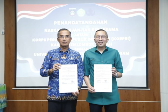 Penandatanganan dilakukan pada Senin (3/11) di Praya oleh Rektor UNW Mataram, Lalu Gede Syamsul Mujahidin dan Ketua Dewan Pengurus KORPRI Loteng, Lalu Firman Wijaya.