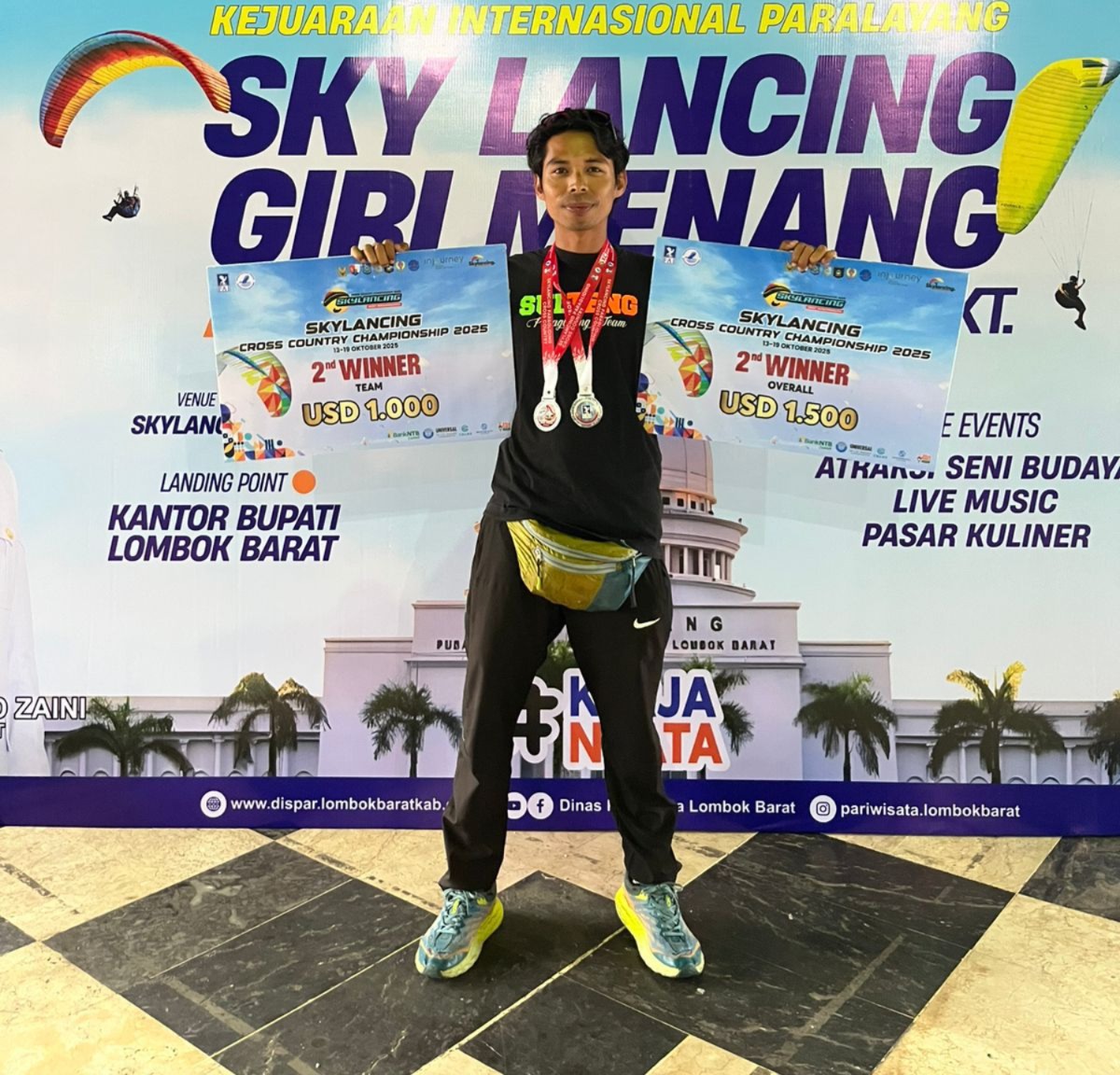 Lombok Tengah (Inside Lombok) – Atlet paralayang asal Sembalun, Lombok Timur, Taiger Trawan atau yang akrab disapa Madun, meraih juara dua kategori individu dan tim pada ajang Paralayang Cross Country Championship Internasional 2025 yang digelar di Sky Lancing, Lombok Tengah, pada 13–19 Oktober 2025.