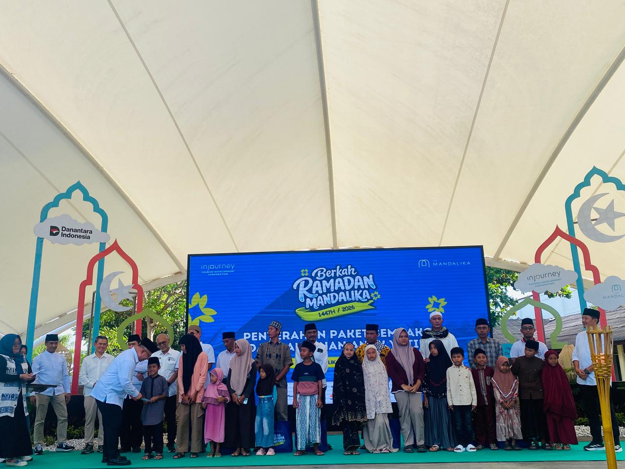Lombok Tengah (Inside Lombok) – InJourney Tourism Development Corporation (ITDC) menyalurkan santunan kepada puluhan anak yatim dan membagikan ribuan paket sembako kepada masyarakat di tujuh desa penyangga Kawasan Ekonomi Khusus (KEK) Mandalika melalui program Berkah Ramadan Mandalika, Jumat (13/3). Kegiatan tersebut merupakan bagian dari rangkaian program sosial ITDC selama Ramadan di kawasan Mandalika.