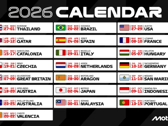 Lombok Tengah (Inside Lombok) – Dorna Sports resmi merilis kalender MotoGP 2026 dengan rangkaian seri yang berlangsung dari akhir Februari hingga November 2026. Pertamina Grand Prix of Indonesia di Sirkuit Mandalika dijadwalkan berlangsung pada 9–11 Oktober 2026, dengan balapan utama digelar pada 11 Oktober.