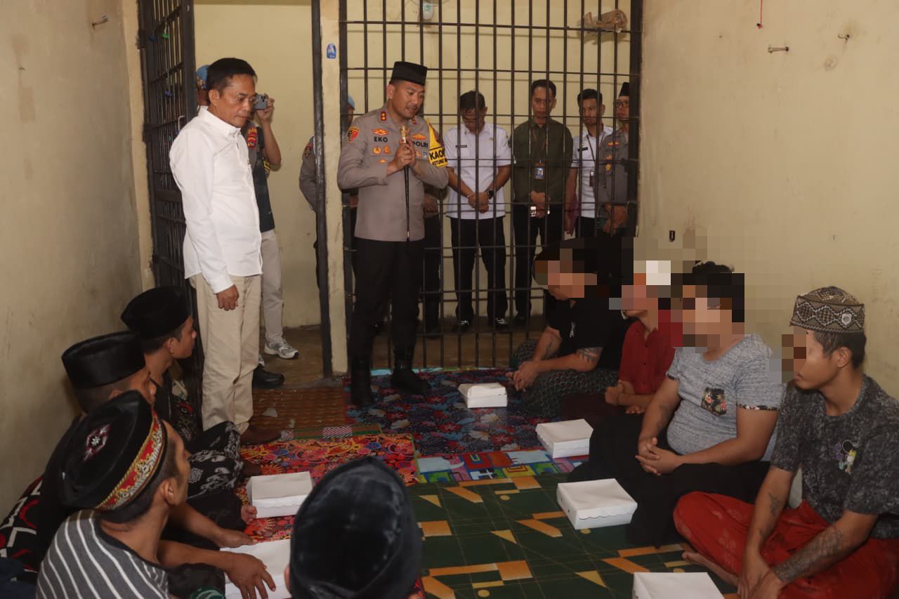 Lombok Tengah (Inside Lombok) – Kapolres Lombok Tengah (Loteng) bersama Bupati Loteng melaksanakan kegiatan halal bihalal dan berbagi makanan dengan para tahanan di Rumah Tahanan (Rutan) Polres Loteng, Rabu (25/3). Kegiatan tersebut dilakukan dalam rangka momentum Hari Raya Idulfitri 1447 Hijriah sebagai bentuk kepedulian dan pendekatan humanis kepada para tahanan.