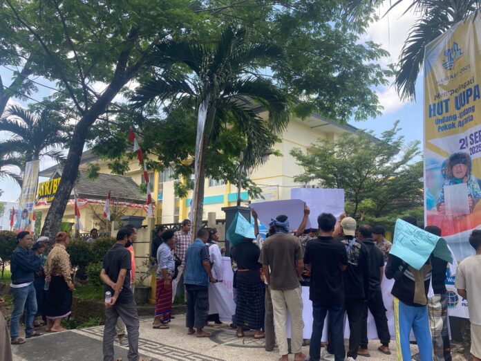 Lombok Tengah (Inside Lombok) – Puluhan warga mendatangi kantor Badan Pertanahan Nasional (BPN) Kabupaten Lombok Tengah (Loteng), Senin (29/9), untuk meminta kejelasan terkait pengajuan sertifikat tanah di Bukit Seger, Kecamatan Pujut. Massa menyoroti adanya dua permohonan berbeda atas lahan seluas 6,5 hektare yang diajukan oleh Mamiq Kalsum sejak 2018 dan Lalu Amanah pada 2024.