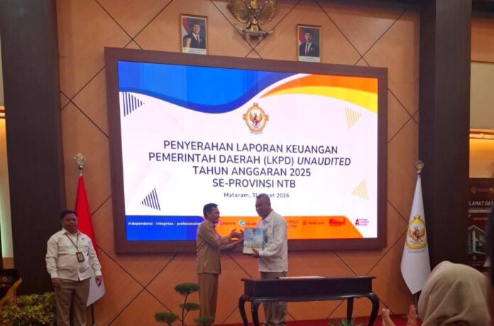 Lombok Tengah (Inside Lombok) – Bupati Lombok Tengah (Loteng), Lalu Pathul Bahri menyerahkan Laporan Keuangan Pemerintah Daerah (LKPD) unaudited Tahun Anggaran 2025 kepada BPK RI Perwakilan NTB. Penyerahan dilakukan di Kantor BPK RI Perwakilan NTB sebagai bagian dari kewajiban pemerintah daerah (Pemda) dalam proses audit laporan keuangan.