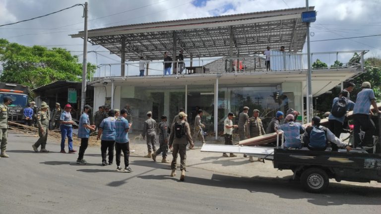 Lombok Tengah (Inside Lombok) – Puluhan petugas dari Satuan Polisi Pamong Praja (Satpol PP) dan Dinas Pekerjaan Umum dan Penataan Ruang (PUPR) Lombok Tengah (Loteng) melakukan pembongkaran paksa bangunan minimarket di Desa Selong Belanak, Kecamatan Praya Barat. bangunan itu dibongkar karena melanggar aturan dan tidak mengindahkan surat peringatan yang sudah diberikan.