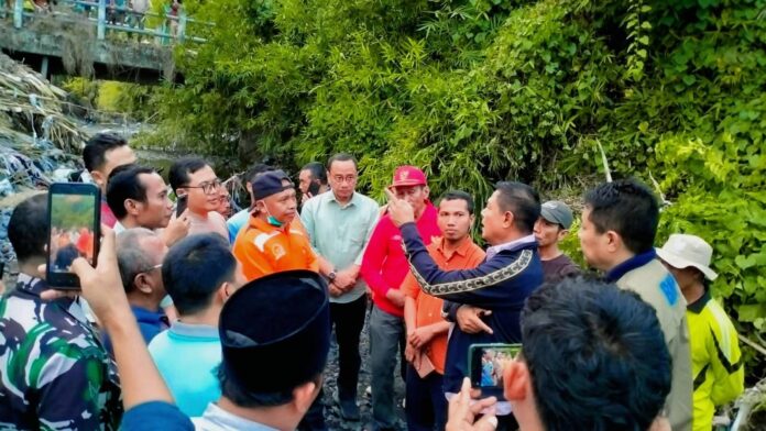 Lombok Timur (Inside Lombok) – Bupati Lombok Timur (Lotim), Haerul Warisin, serta pihak terkait turun langsung memantau dampak banjir luapan yang terjadi di beberapa wilayah. Salah satunya melihat lahan pertanian dan jembatan penghubung Desa Teko – Apitaik yang rusak diterjang banjir.
