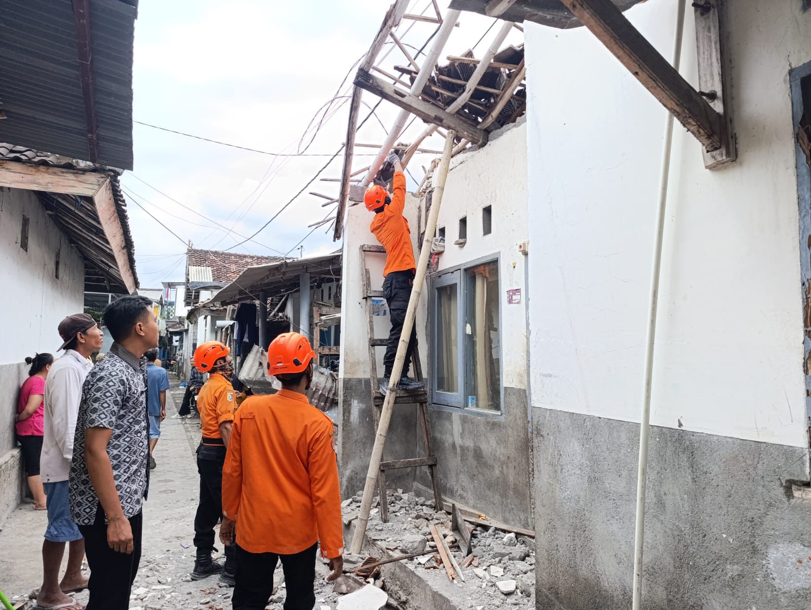 Lurah Pancor, Galibra Pratama, menjelaskan bahwa atap dan struktur bangunan rumah memang sudah dalam kondisi rapuh. Kayu penopang tidak lagi kuat menahan beban, sehingga menyebabkan ambruknya atap yang menaungi dua unit rumah milik dua kepala keluarga berdekatan. “Memang atapnya sudah lapuk karena usia, jadi yang kena ini dua rumah tapi satu atap dan dihuni oleh 7 jiwa,” jelasnya, Kamis (13/11/2025).