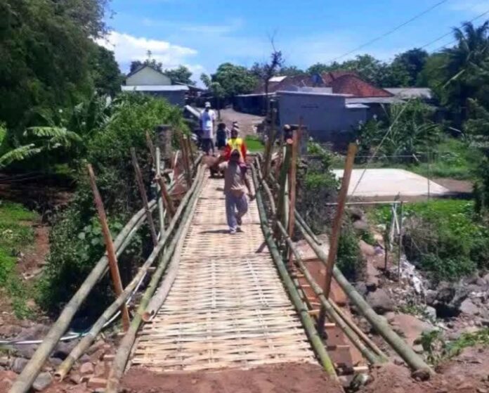 Lombok Timur (Inside Lombok) – Lebih dari satu bulan setelah jembatan penghubung di Dusun Aik Beta, Desa Perigi, Kecamatan Suela, Lombok Timur, ambruk, warga setempat membangun jembatan darurat dari bambu secara swadaya. Langkah itu dilakukan karena janji pemerintah daerah untuk membangun jembatan sementara belum terealisasi hingga kini.