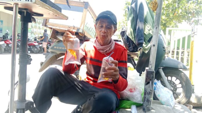 Kini Abdul Gani berjualan ikan cupang dan berbagai jenis ikan hias lain di sejumlah titik, termasuk area parkiran Puskesmas Pringgabaya. Ia membawa 50–60 ekor ikan setiap hari yang diperoleh dari pemasok, dengan keuntungan seribu hingga dua ribu rupiah per ekor. “Kadang cuma cukup buat bensin, makan, dan beli beras. Sisanya untuk kebutuhan anak-anak,” katanya.