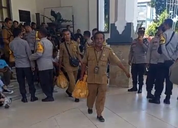 Lombok Timur (Inside Lombok) – Viral video yang memperlihatkan massa aksi dibagikan makanan berupa nasi bungkus oleh pihak DPRD Lombok Timur (Lotim) tuai beragam apresiasi dari masyarakat. Video yang diunggah pertama kali oleh akun Forum Jurnalis Lombok Timur (FJLT) tersebut ratusan komentar dan ratusan kali dibagikan.