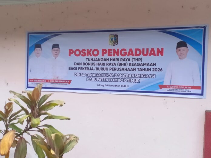 Lombok Timur (Inside Lombok) – Dinas Ketenagakerjaan dan Transmigrasi (Disnakertrans) Lombok Timur (Lotim) membuka posko pengaduan bagi pekerja yang tidak menerima Tunjangan Hari Raya (THR) dari perusahaan tempat mereka bekerja. Posko tersebut disediakan untuk menampung laporan pekerja sekaligus memastikan hak-hak karyawan terpenuhi menjelang Idul Fitri.