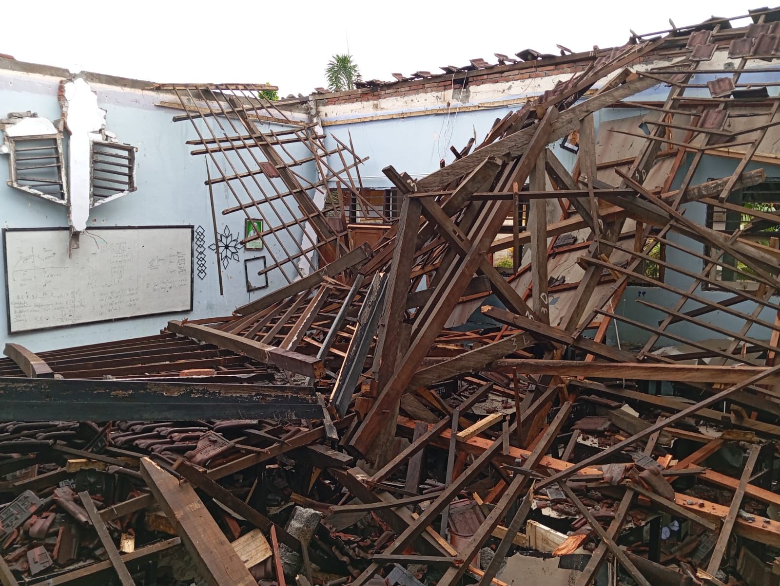 Sudah Lama Lapuk, Atap Ruang Belajar SMAN 1 Wanasaba Ambruk Diterjang Hujan Lebat