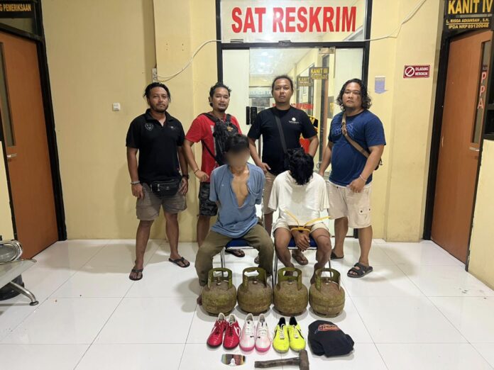 “Adapun barang Bukti yang berhasil kami amankan, diantaranya satu palu hammer, 3 pasang sepatu futsal, 4 tabung gas LPG 3 kg, kacamata dan jaket,” tuturnya. Akibat perbuatan para pelaku, kedua toko mengalami kerugian materiil yang ditaksir mencapai Rp15.000.000.