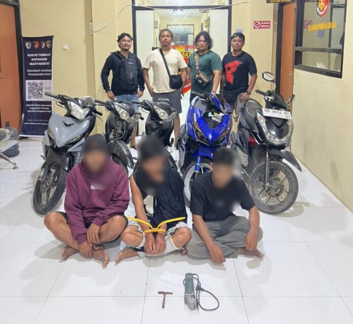 “Selain itu, turut diamankan satu unit motor yang digunakan para pelaku saat beraksi serta kunci T yang digunakan sebagai alat mereka melakukan aksinya,” jelasnya.