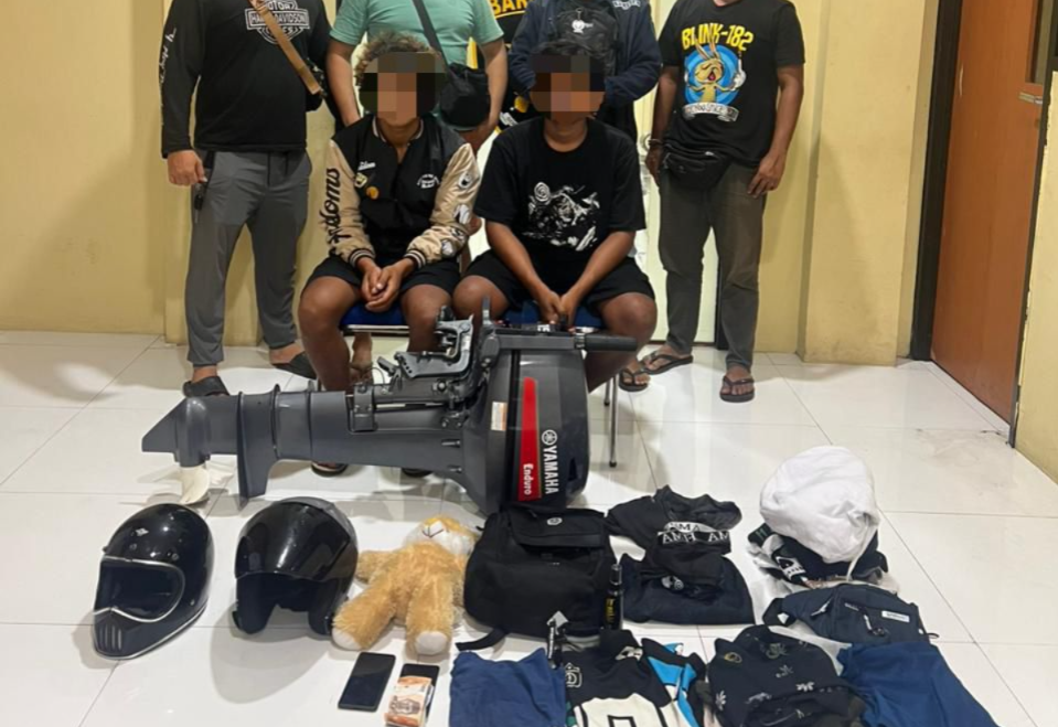 “Dari tangan para tersangka kami berhasil menyita sejumlah barang bukti, yakni mesin boat Yamaha, dua HP, helm, tas, dan pakaian yang digunakan pelaku saat beraksi,” terangnya.