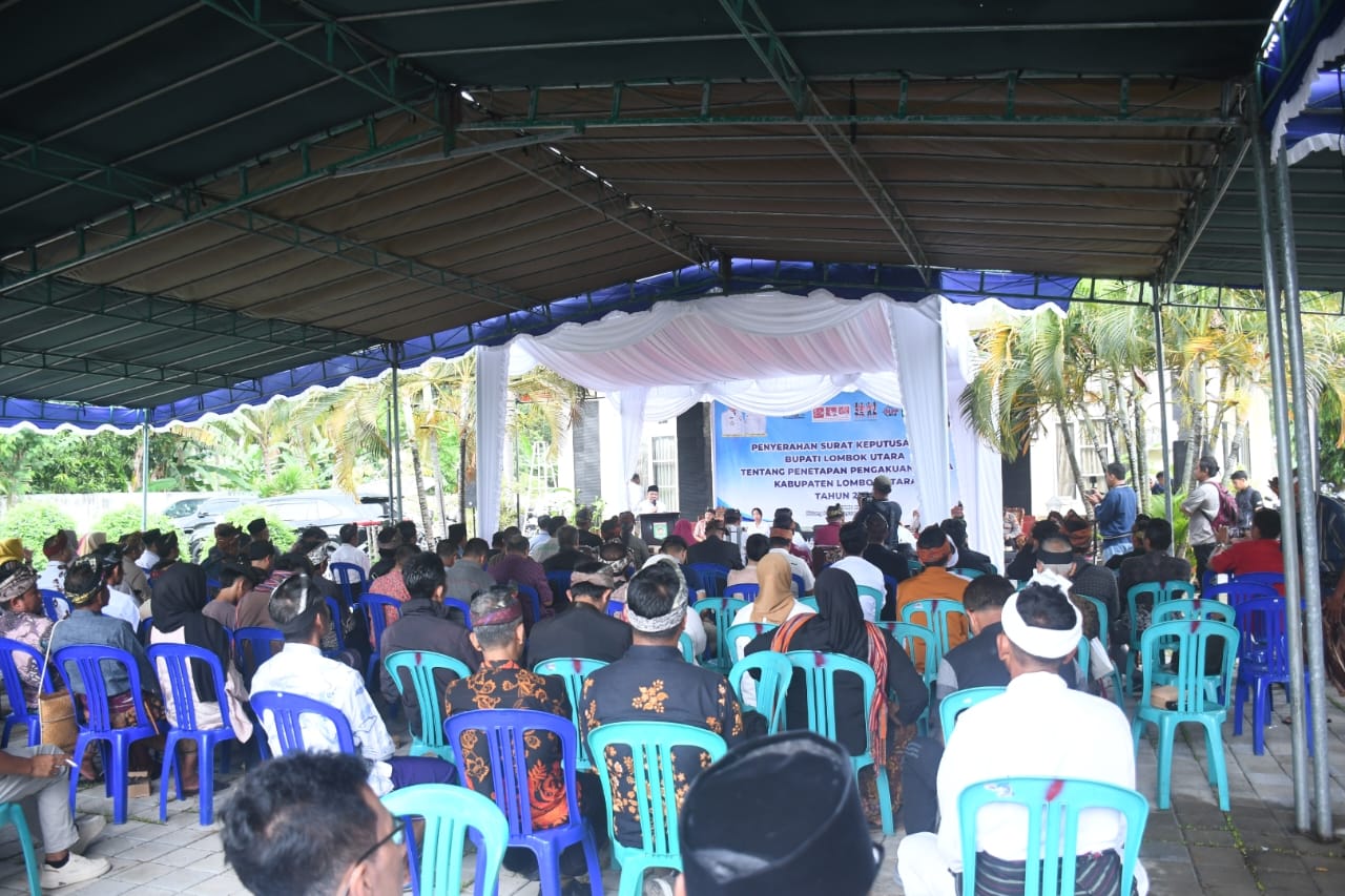 Lombok Utara (Inside Lombok)- Sebuah lembaran sejarah baru bagi eksistensi tradisi di Gumi Tioq Tata Tunaq resmi tertulis. Bupati Lombok Utara, Najmul Akhyar, menyerahkan Surat Keputusan (SK) Penetapan Pengakuan kepada 12 Masyarakat Hukum Adat (MHA) di Kabupaten Lombok Utara (KLU).