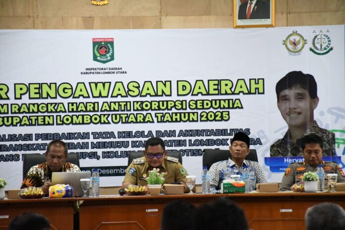Lombok Utara (Inside Lombok) – Pemerintah Kabupaten (Pemkab) Lombok Utara (KLU) melalui Inspektorat Daerah menggelar Rapat Koordinasi Gelar Pengawasan Daerah Tahun 2025 sebagai langkah memperbaiki tata kelola pemerintahan dan akuntabilitas kinerja. Kegiatan ini ditujukan untuk mendorong penyelenggaraan pemerintahan yang transparan dan bebas dari praktik Korupsi, Kolusi, dan Nepotisme (KKN).