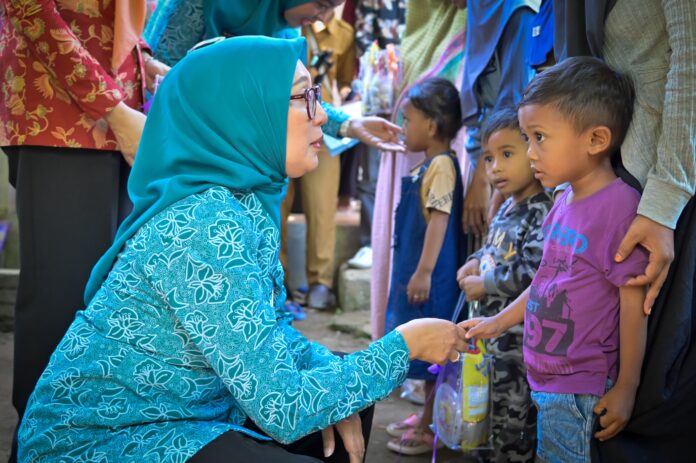 Mataram (Inside Lombok) – Ketua TP-PKK NTB, Sinta Agathia, bersama Pokja 3 TP PKK Provinsi NTB menyapa langsung warga Desa Tembowong, Kecamatan Sekotong, Lombok Barat, kemarin.
