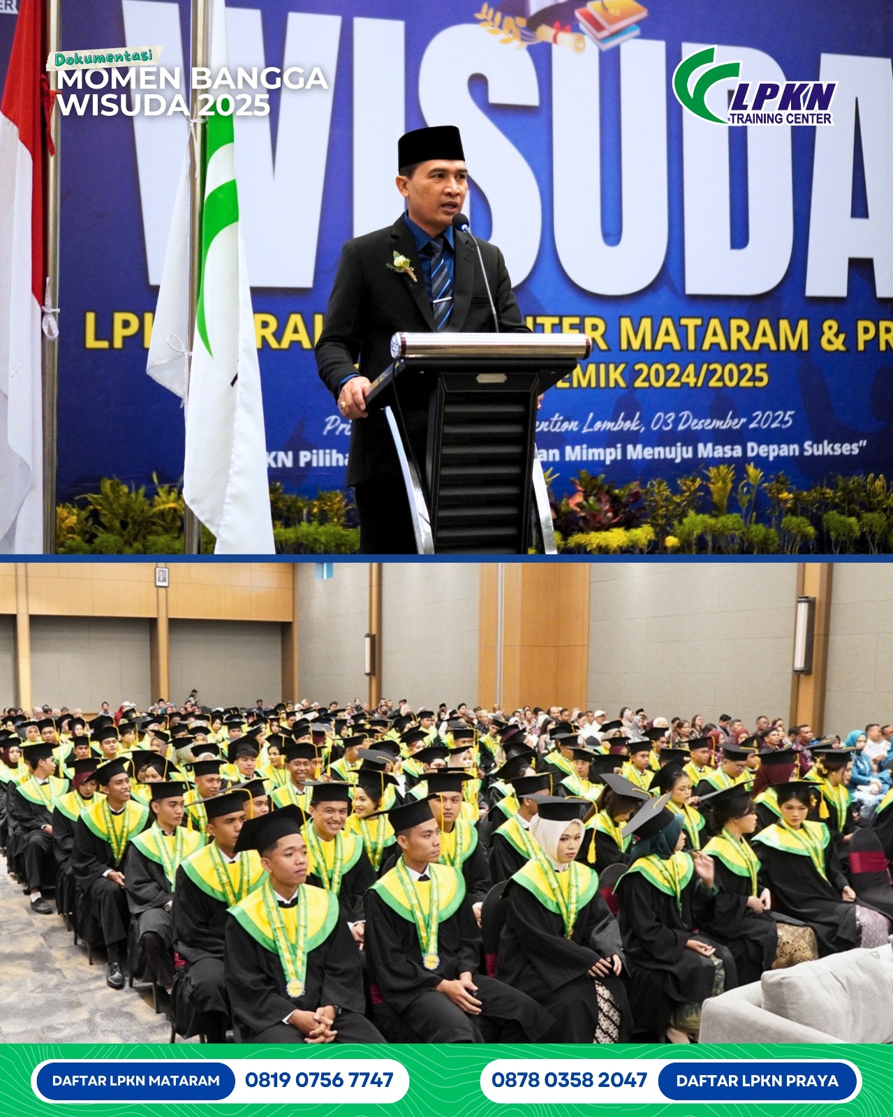 Mataram (Inside Lombok) – LPKN Training Center mewisuda 308 mahasiswa pada akhir tahun 2025, dengan 93 persen di antaranya telah bekerja baik di dalam maupun luar negeri. Sebagian besar mahasiswa mulai bekerja sebelum wisuda, menunjukkan tingginya tingkat penyerapan lulusan lembaga tersebut.