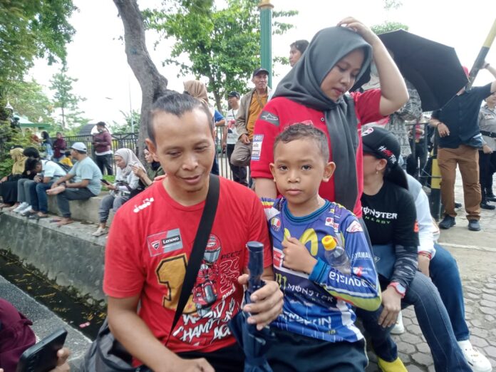 Sebagai bentuk dukungannya ke Pecco, Andi dan anggota keluarganya serentak menggunakan jersey dengan bertuliskan Pecco. Selama ini pembalap idolanya hanya bisa dilihat di televisi atau media sosial. Namun dengan adanya parade ini, para penonton bahkan para fans bisa melihat langsung. “Saya sekeluarga kesini. Tapi satu anak saya tidak ikut,” katanya.