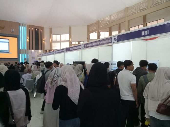 Mataram (Inside Lombok) – Universitas Mataram (Unram) menggelar job fair pada Kamis (23/10) pagi dengan melibatkan 45 perusahaan dari dalam dan luar daerah. Kegiatan ini membuka ribuan lowongan kerja bagi lulusan berbagai jurusan dan ditargetkan mampu menyerap hingga 1.000 tenaga kerja.