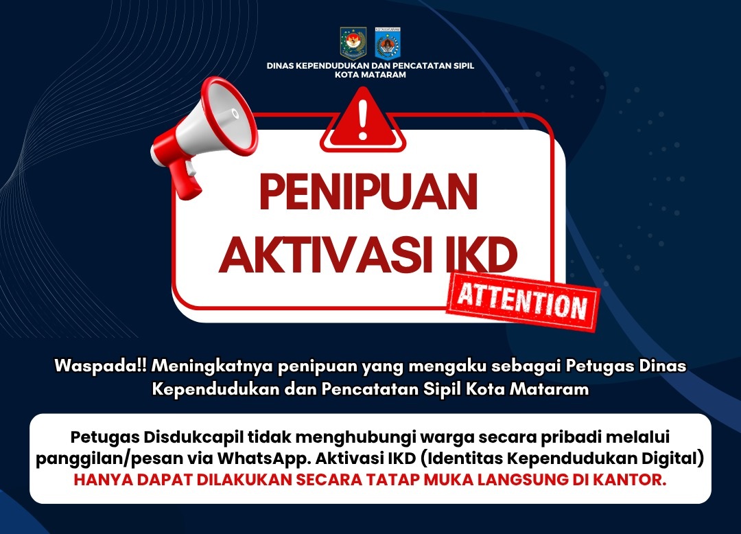 Dinas Dukcapil Kota Mataram menyebutkan sekitar 10 warga yang melaporkan adanya oknum yang mengaku menjadi petugas untuk melakukan aktivasi IKD. Di mana, oknum tersebut menghubungi warga yang sudah menggunakan IKD agar segera aktivasi.