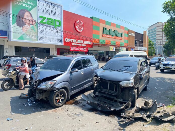 Mataram (Inside Lombok) – Kecelakaan lalu lintas melibatkan dua mobil, Avanza dan Xenia, terjadi di Jalan Sriwijaya, Cakranegara, Kota Mataram, pada Senin (7/4). Insiden itu menyebabkan kerusakan parah pada kedua mobil dan sebuah sepeda motor.